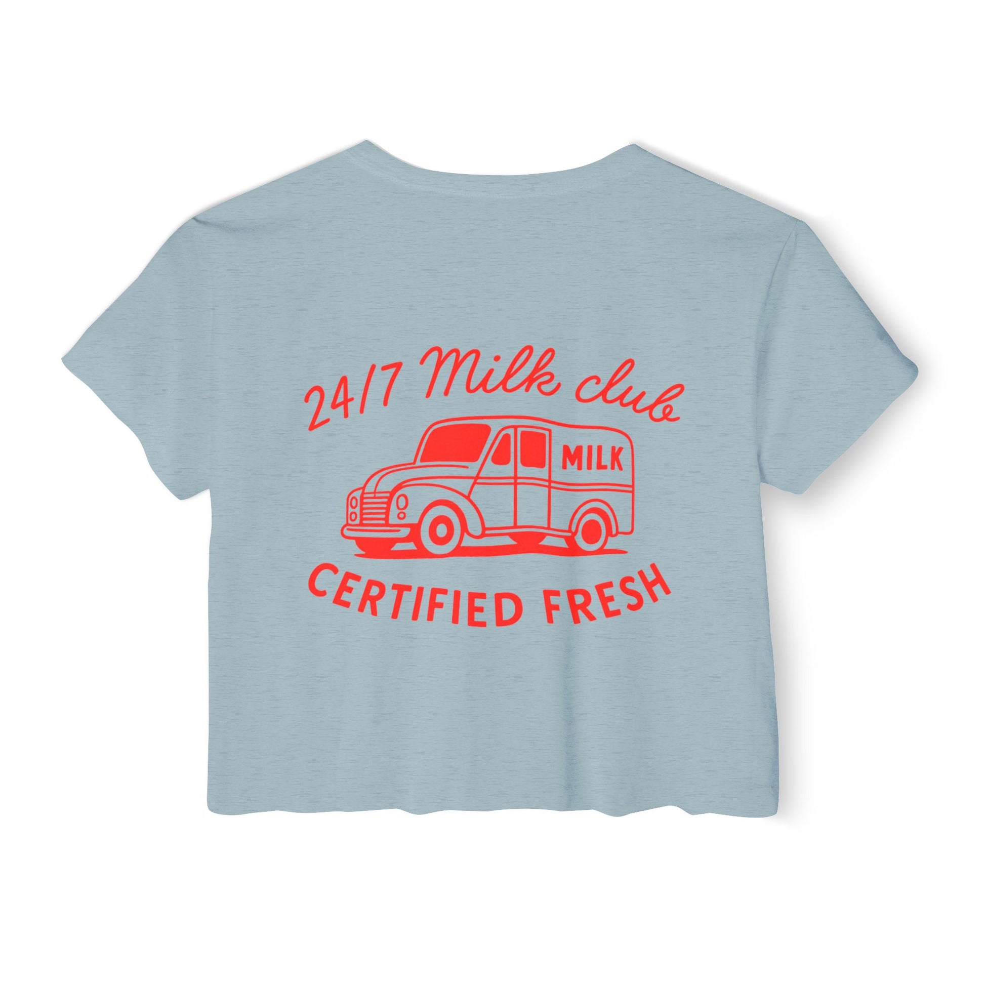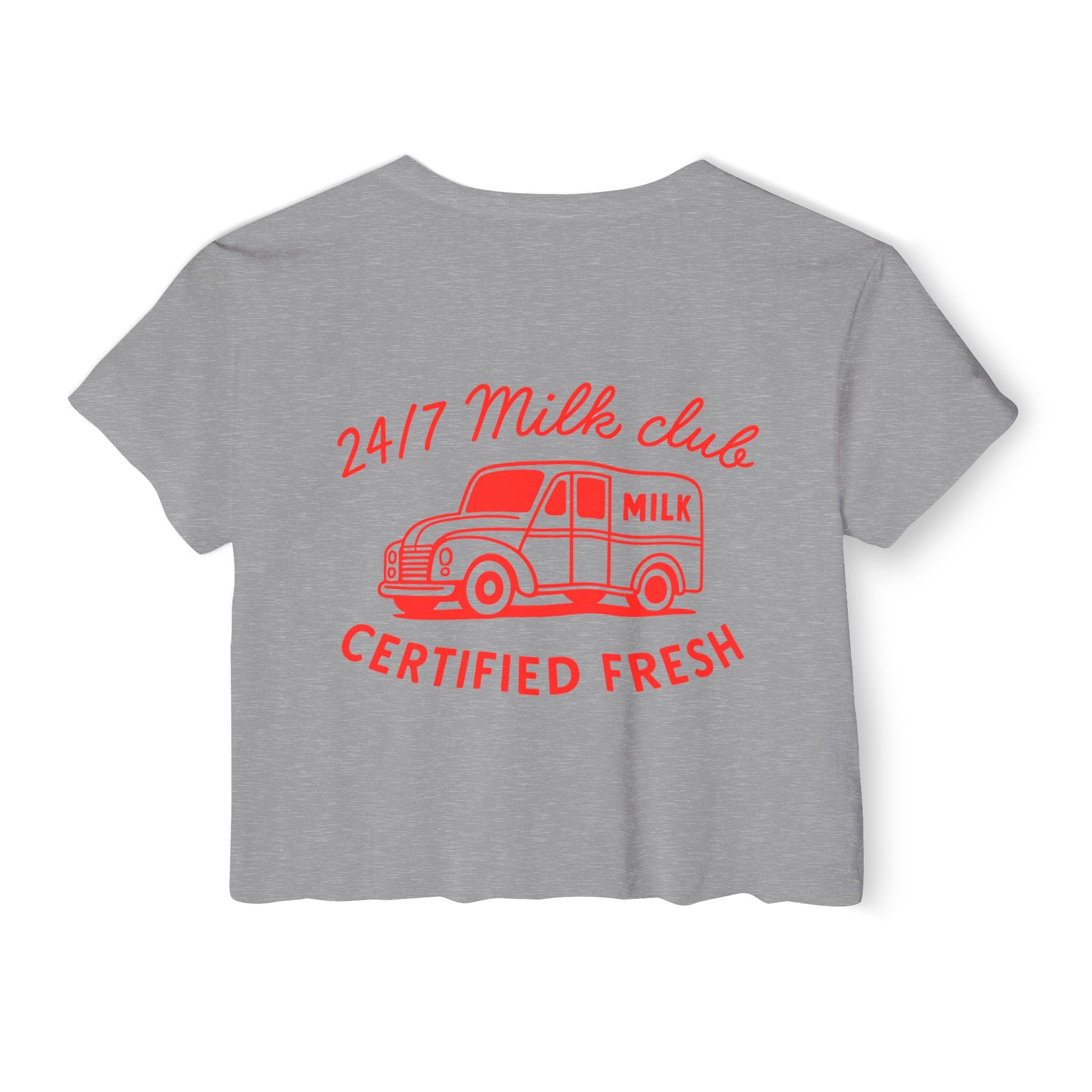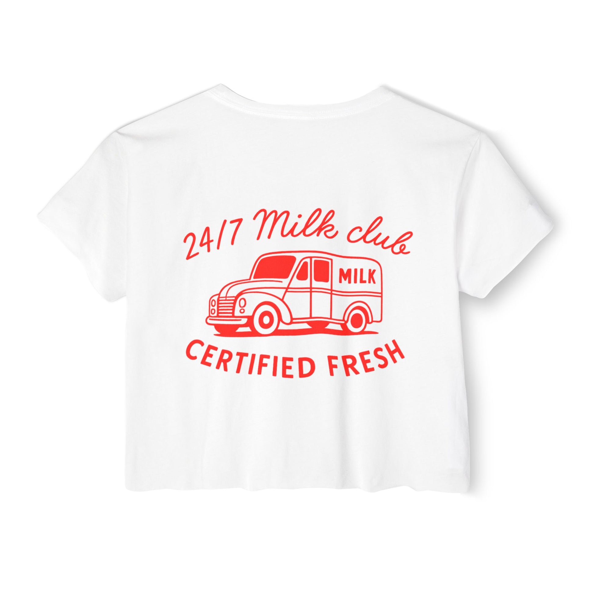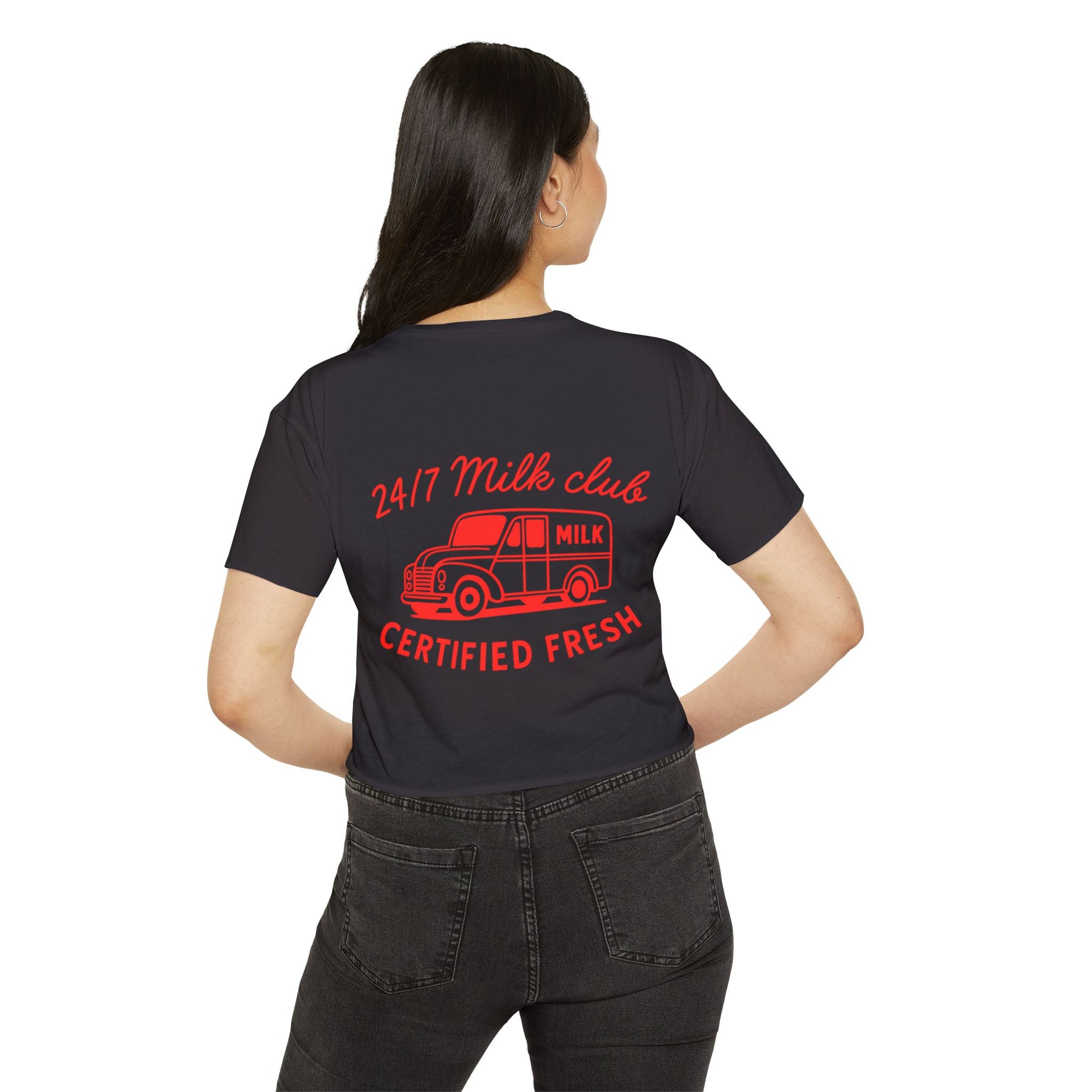 Welcome to the club that never closes. The 24/7 Milk Club tee is a cheeky nod to the nonstop grind of breastfeeding, featuring a vintage milk delivery truck graphic with bold red ink on the back and our signature milk crate logo on the front. The phrase “Certified Fresh” curves proudly beneath the truck, because let’s be real—this is premium, on-tap goodness.